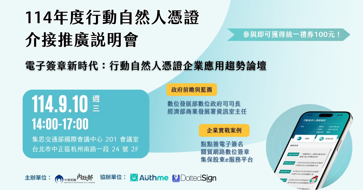 本論壇將聚焦「行動自然人憑證」在身分驗證與數位簽章的雙重應用,協助企業導入合規、便捷的數位工具。會中將深入解析其技術優勢,並由主管機關及業界先驅分享實際案例,展示如何強化用戶體驗、降低營運風險,並加速業務流程。